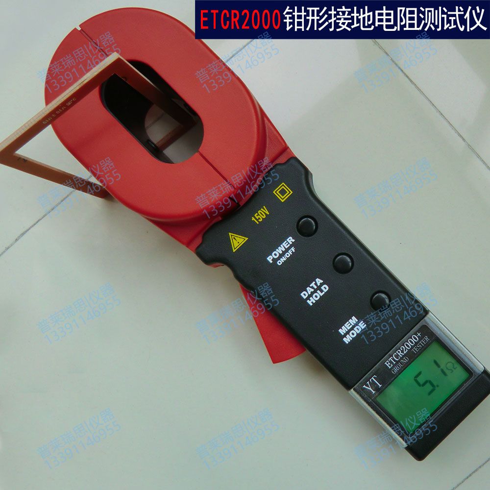 ETCR2000钳形接地电阻仪用于电力、电信、气象以及其它设备的接地电阻测量。电阻仪有长钳口及圆钳口之分,长钳口特别适用于扁钢接地线的场合。传统的接地电阻测量方法是采用电压—