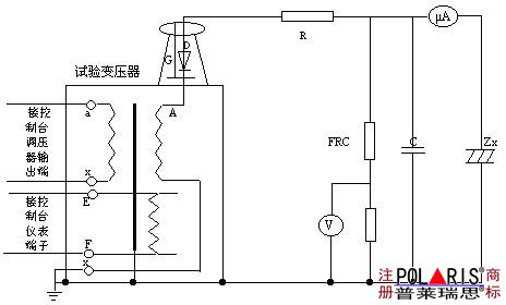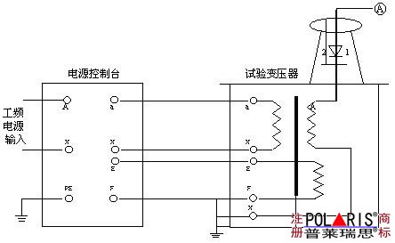 在试验变压器中:a、x为低压输入端;A、X为高压输出端;E、F为仪表测量端。