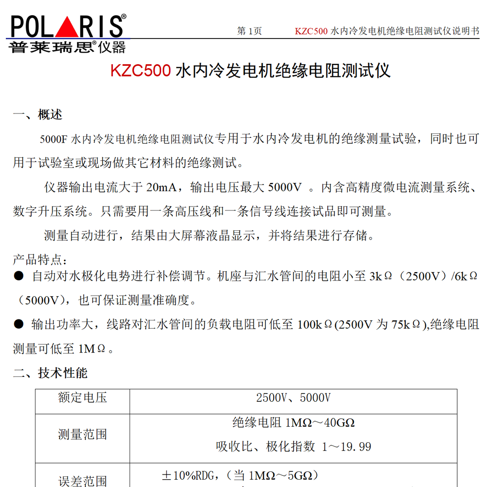 | 额定电压 | 2500V、5000V |