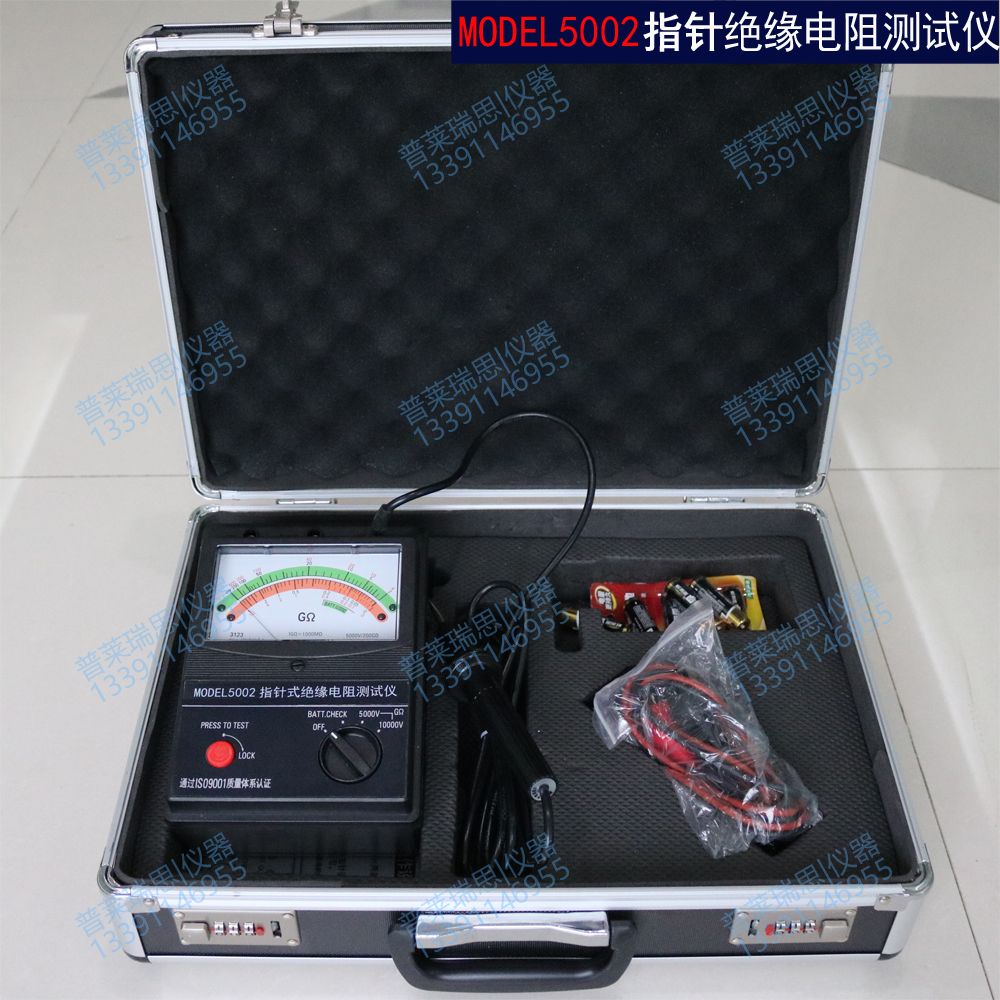| 附件 :铝合金(5000V/10000V)或工程塑料(5000V以下)包装箱,(8节1.5V五号碱性电池,测试导线,产品说明合格证)各一份,测试线2根,高压线棒(连在表上)1付; | ||||||
