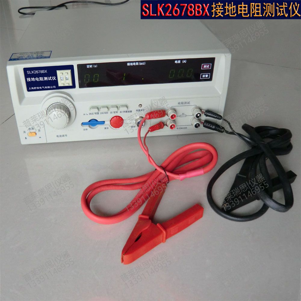 SLK2678BX系列接地电阻测试仪是按照GB﹑IEC﹑ISO﹑BS﹑UL﹑JIS等国际国内的安全标准而设计的,接地电阻的指标是衡量各种电气设备安全性能的重要指标之一。它是在大电流(25A或10A)的情况下对接地回路的电阻进行测量,同时也是对接地回路承受大电流指标的测试,以避免在绝缘性能下降(或损坏)时对人身的伤害。本测试仪是为满足以上要求为生产车间及实验部门提供高性能测试仪器而开发生产的。本仪器对供电电压要求不高,测量精度高,速度快,使用方便,特别适用于要求高的实验室和自动检测线上使用。断路报警选择功能(即开路报警)可以方便地知道仪器是否工作在正常测试状态,用户可以根据实际需要选择是否需要此项功能。本仪器采用三位半数字显示,读数方便,采用优化设计,整机具有极高的可靠性和稳定性。