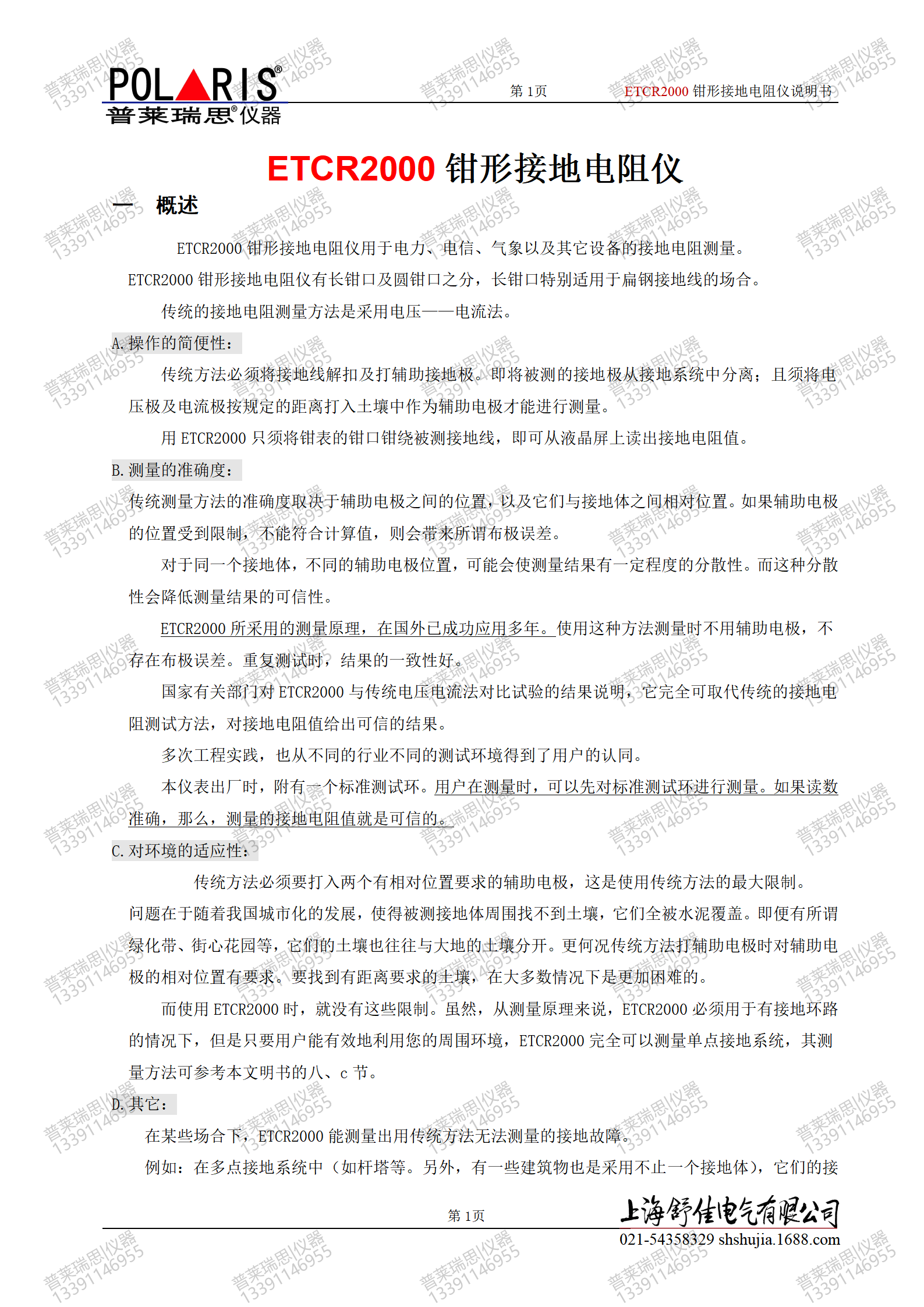 ETCR2000钳形接地电阻仪详细说明书