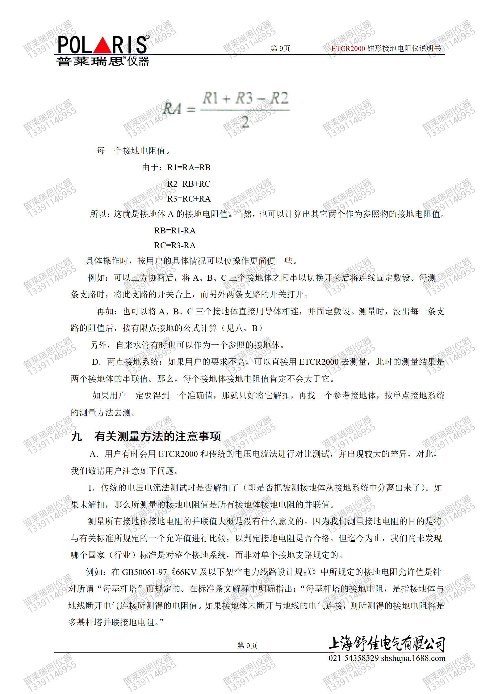 而使用ETCR2000时,就没有这些限制。虽然,从测量原理来说,ETCR2000必须用于有接地环路的情况下,但是只要用户能有效地利用您的周围环境,ETCR2000完全可以测量单点接地系统,其测量方法可参考本文明书的八、c节。