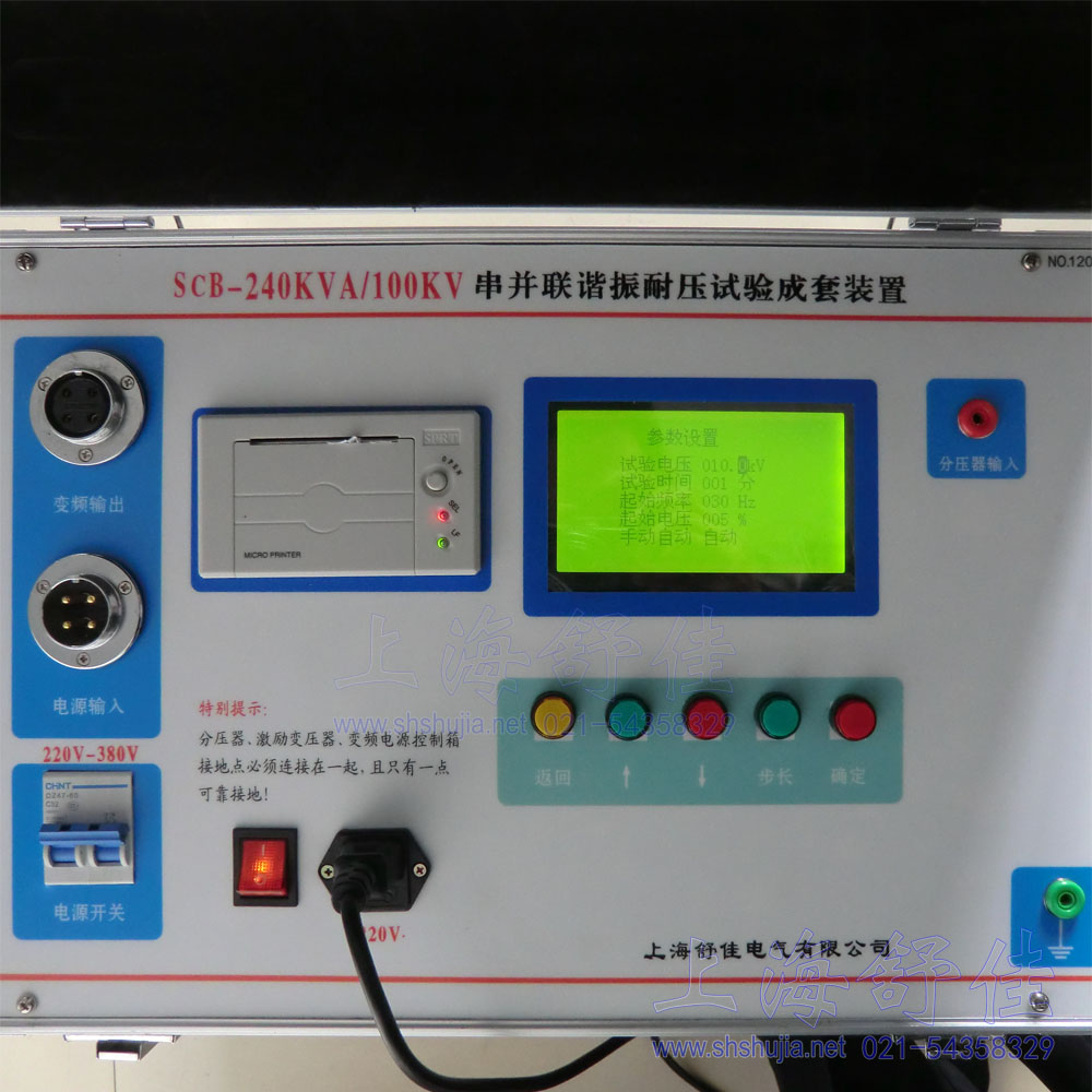 a、变频输出:电源输出插头,接励磁变压器b、电源输入:电源输入插头,接交流电源,可接 AC380V或者 AC220V c、电源开关d、分压器输入:接电容分压器输入插头e、USB 通信:USB 计算
