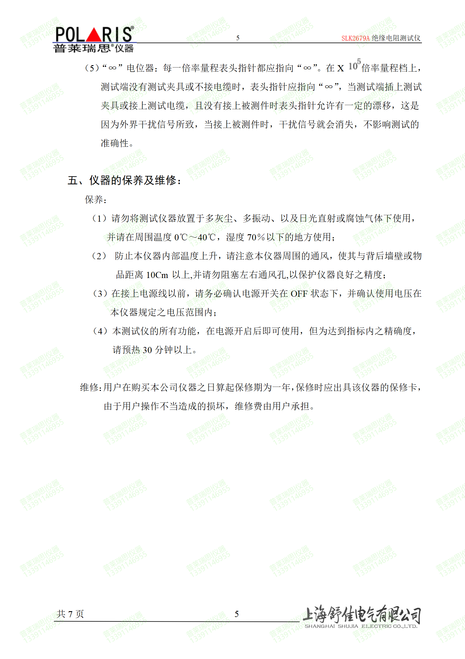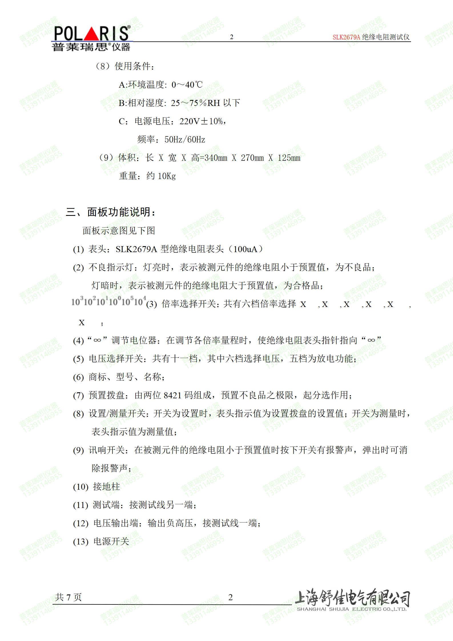 阻抗值>=10GΩ   ±6%±0.5格
