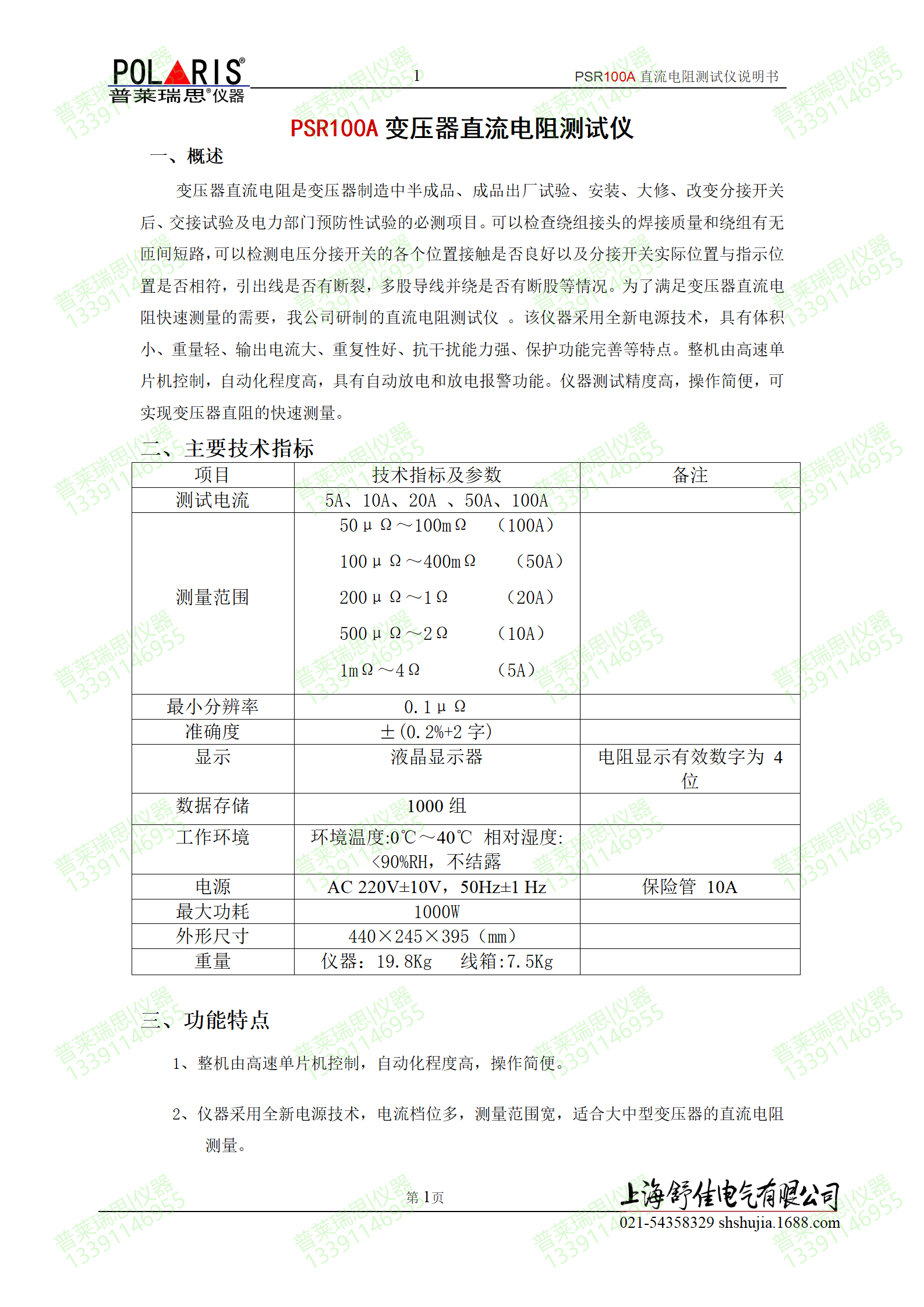 | 测试电流 | 5A、10A、20A 、50A、100A | |