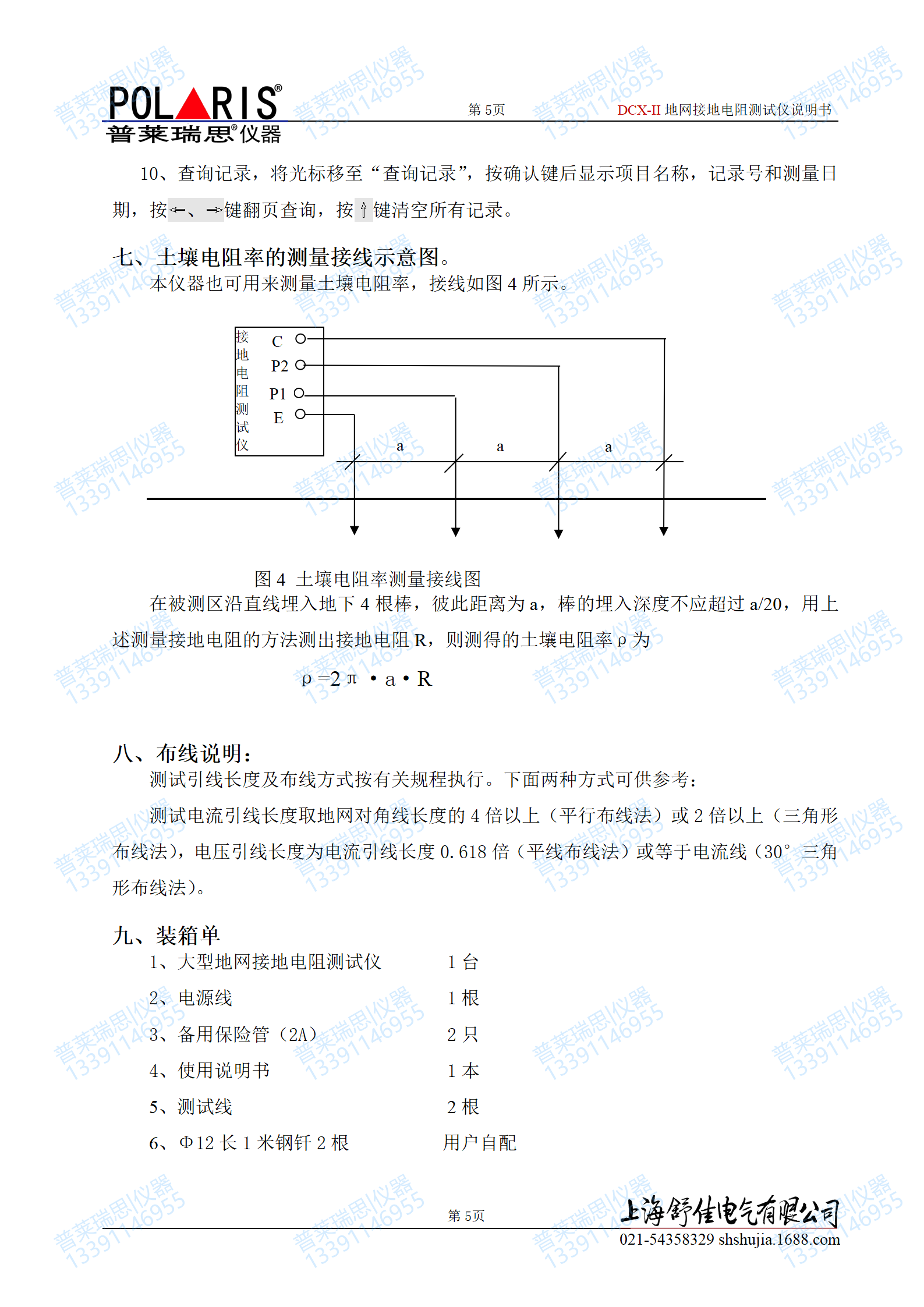 测量精度:0--10Ω(2%)10--50Ω(5%)0.001Ω输出电流5A,输出电压:100V,电压电流线铜芯截面积≥2.5 mm2